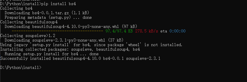 解决办法:进入到Python的安装目录,执行 pip install bs4 命令即可。