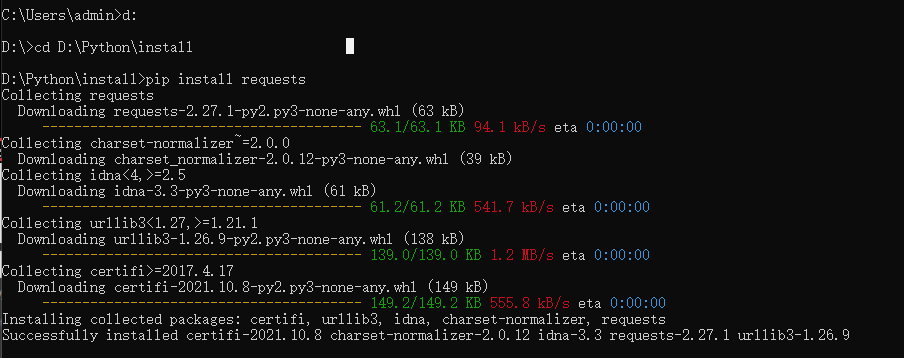 解决办法: 1. 使用win+R 进入cmd,然后cmd 命令进入到Python的安装目录。 cd D:\Python\install