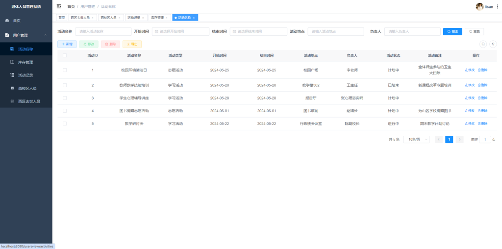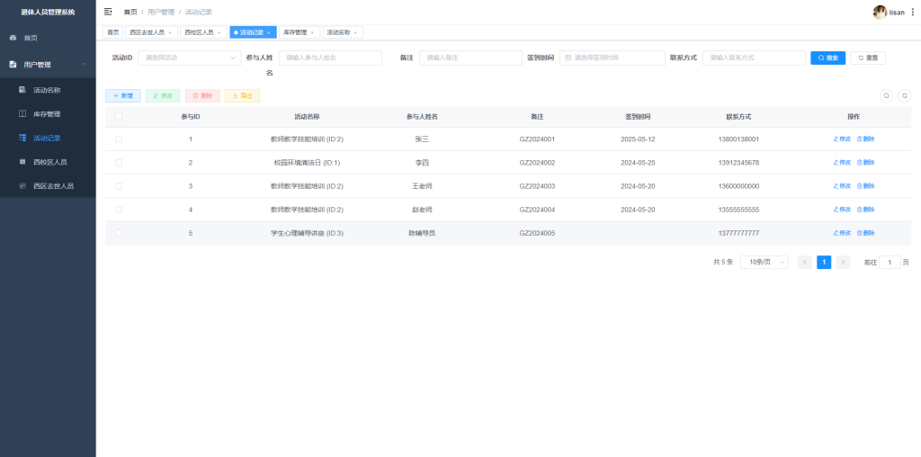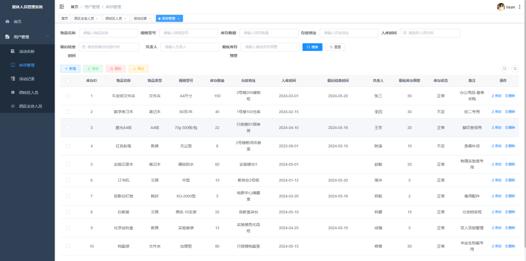 小编 Java 付费源码 29天前 java退休人员管理系统 不同院区退休人员可以进行转移,活动记录,人员管理,库存管理 https://www.365tqb.com/wp-content/uploads/2025/09/1759133128-cb85935cd75e387.mp4 毕设网一个优秀的资源源码网站!毕设网 » java退休人员管理系统